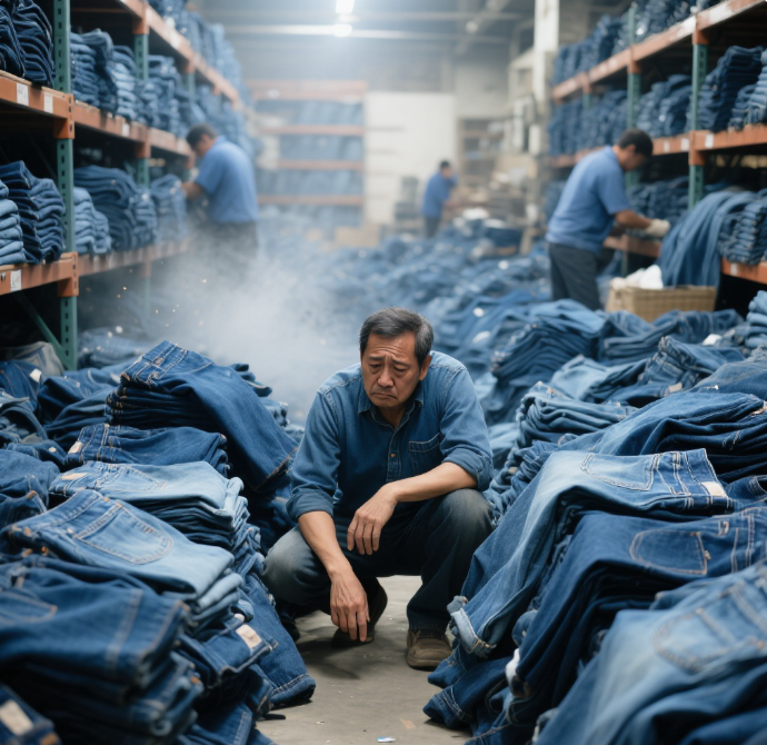 东莞市虎门镇一个工厂。主要生产A牛仔裤,干了 11 年了。之前一直做代工,2012年开始做自己品牌,也有自己的四个淘宝店和微商城。几年下来,做了 50 多款产品,但是也多了 3 百多万库存。少的款 100 来条,多的接近 1 万条,男款女款都有。老板就想把库存清理掉。收回陈本,顺带少租点仓库就好,到处找人来干这事。