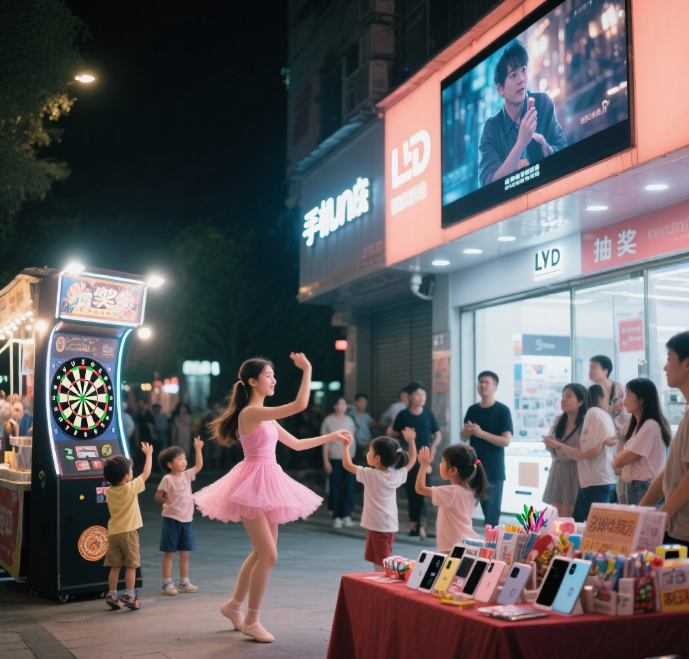 一个手机店老板在店门口提供了一个免费的飞镖游戏,每天都有很多人在那里玩,还举办了飞镖小组比赛,谁赢了就能获得手机号码卡或者低价手机,有手机号码卡的赢家就能享受低价买手机,买了手机就要充值,如果签订一个长期充值协议,不仅充值卡可以再优惠,而且还能获得一个推荐名额,每推荐一位朋友到店里买手机,就能获得额外的奖励。