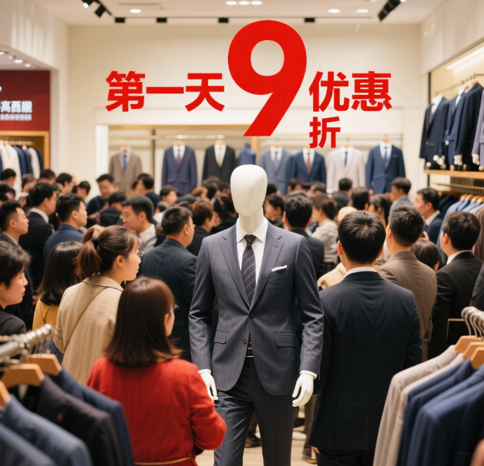 据西服店的经验,第 1 天和第 2 天前来的客人并不多,来也只是看看就回去。第 3 天就开始有一群一群的客人光顾,第 5 天打 6 折的客人就像洪水般涌到商店开始抢购,以后就连日客人爆满,当然把商品全部卖光是不用说了。